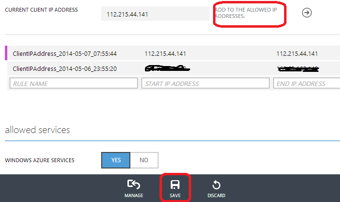 Namun pastikan bahwa IP Add komputer yang anda gunakan telah mendapat izin untuk bisa mengakes SQL Azure database. untuk melakukan hal ini harus di konfigurasi melalui windows azure portal.