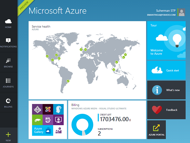 Saya sudah hampir 2 tahun ini menggunakan Windows Azure, sering kali banyak perubahan-perubahan yang postitif pada teknologi komputasi awan yang satu ini. dan sangat cepat sekali perubahannya muncul. salah satunya adalah tampilan antar muka dari Windows Azure.