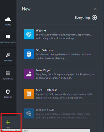 Misal kita mau mengaktifkan layanan baru untuk windows Azure yang kita miliki dapat memanfaatkan menu bar yang ada disamping kiri seperti pada gambar berikut :